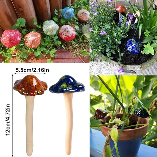 Ceramic Mushrooms for Garden 6 Pack Small Mushroom Decor Garden Decor Outside Outdoor Lawn Ornaments Decorative Plant Stakes Decorations for Pots Yard Little Toadstool Statue Gifts Brown