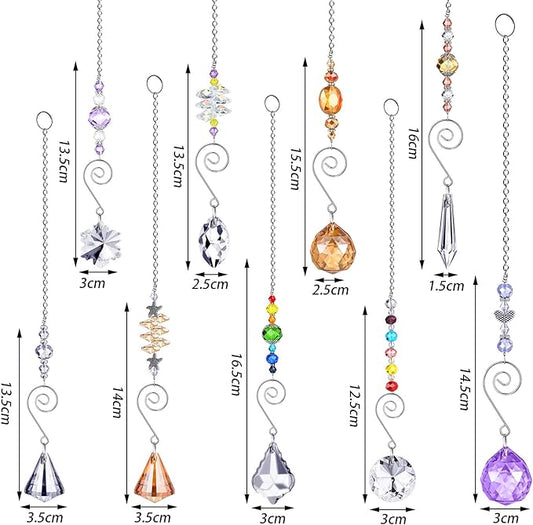 Hicarer 9 Pcs Crystal Suncatchers Hanging Catchers with Chain Colorful Glass Pendant Beads Chandelier Prism Ornament for Window Home Wall Tree Cars Decor Wedding Birthday Anniversary Party Gifts
