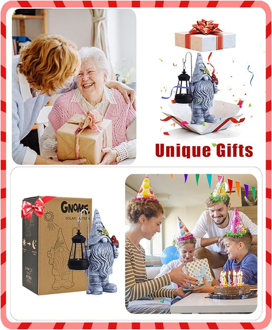 Nacome Solar Gnome Garden Statue for Decor: Outdoor Sculpture with Lantern for Outside Ornament Yard Art Lawn Porch Patio Balcony - Birthday Gifts for Women Mom