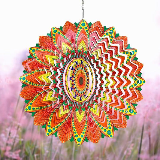 Wind Spinner Colorful Sunflower 12 inch 3D Stainless Steel Laser Cut Metal Double Sided Printing-Hanging Indoor/Outdoor Decorations Yard Gardening Decor,Metal Kinetic Art Ornament Gifts