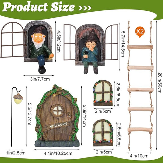 7 Pcs Fairy Garden Accessories Tree Hugger Gnome Statue Fairy Door Window Set Dwarf Elf Landscape Figurine Out The Door Resin Sculpture Hanging Tree Faces Decor for Trees Outdoor Decor