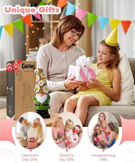 Solar Gnome Garden Statue for Decor: Outdoor Figurines Sculpture with Lights and Bee for Lawn Patio Yard Balcony - Gifts for Mom Women