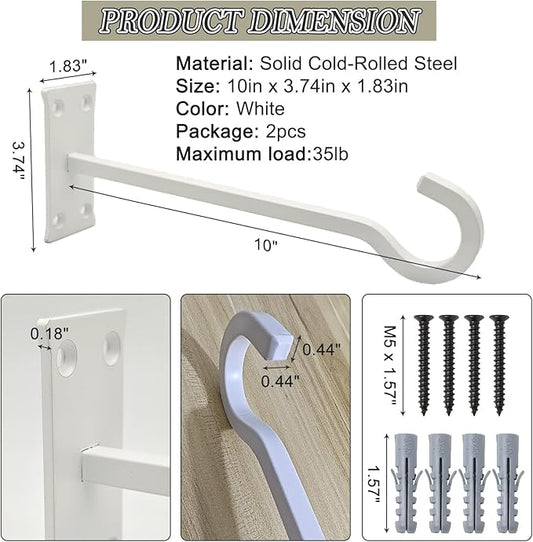 10inch Heavy Duty Plant Hangers Outdoor or Indoor Bird Feeder Hanger Shepherd Hooks 2pcs White Metal Wall Hook for Hanging Plant Bracket, Lantern, Flower Basket, Wind Chimes