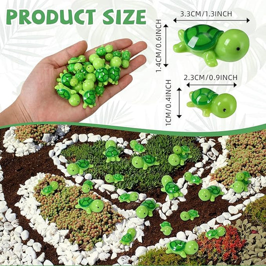 Soaoo 120 Pcs Miniature Sea Turtle Figurine Multicolor Tiny Turtle Statue Mini Sea Creatures Tortoise Miniature Resin Animals for DIY Garden Decoration Cake Home Decor, 2 Sizes (Green)