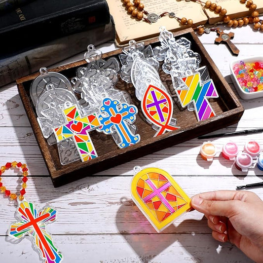 30 Sets Cross Suncatchers Window Art Kits, Christian DIY Sun Catchers Bulk Religious Crafts Paint Your Own Cross Window Ornaments for Boys Girls VBS Sunday School Classroom Home Party Decor