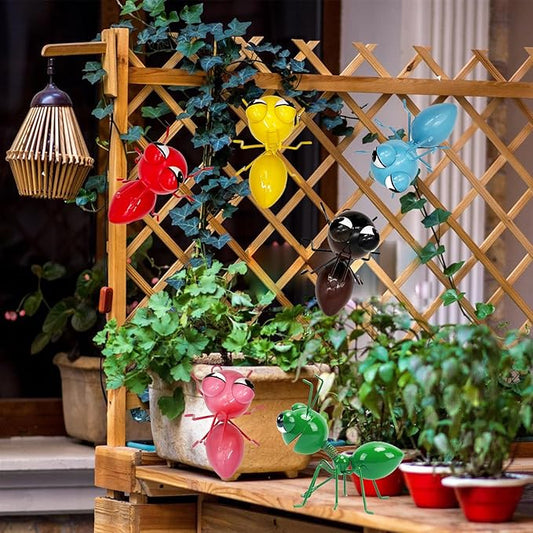 Metal Yard Art Garden Decorative Cute Ant Outdoor Wall Sculptures - Set of 6