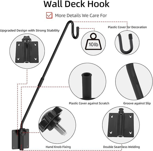 Deck Hook Wall Mounted,Extended Plant Hanger Outdoor,Bird Feeder Hanger-Metal Fence Shepherds Hooks Bracket for Hanging Hummingbird Feeder,Planter,Flower Baskets,Lantern-360°Rotating Pole