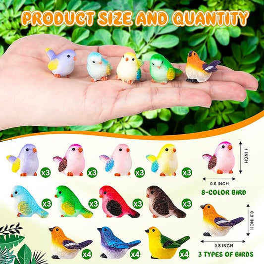 36PCS Miniature Cute Bird Decorative Figurines - Dollhouse Accessories, Mini Resin Birds Toy for Garden Crafts, Micro Landscape Home Meetings Decoration, Cake Topper (11 Styles)