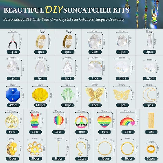310 Pcs DIY Crystal Sun Catchers Indoor Window, Hanging Prism Suncatcher for Window, Colorful DIY Suncatcher Kit, Glass Crystal Alloy Accessories Sun Catcher Crafts for Adult, DIY for Mom…