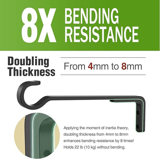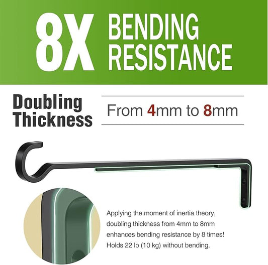8 Inch 2 Pack Black Heavy Duty Outdoor Plant Hangers for Hanging Baskets, Iron Hanging Plant Brackets for Hanging Plants Outside, Metal Plant Hooks Plant Wall Hooks for Hanging Lantern, Bird Feeder