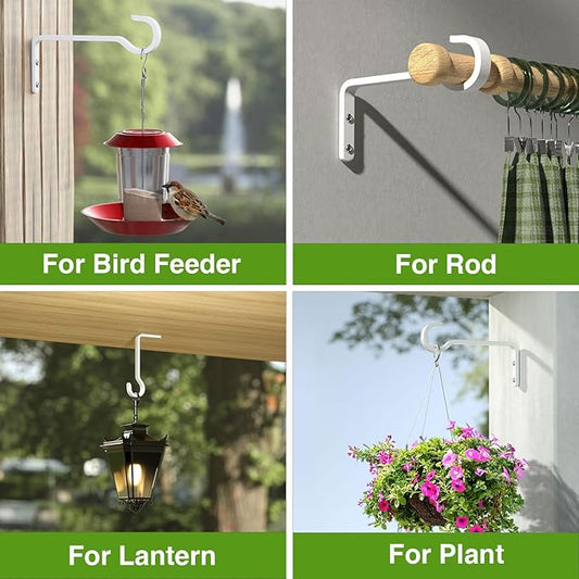 6 Inch 2 Pack Heavy Duty Outdoor Plant Hangers for Hanging Baskets, Iron Hanging Plant Brackets, Metal Plant Wall Hooks for Lantern, Bird Feeder, Windchime, White
