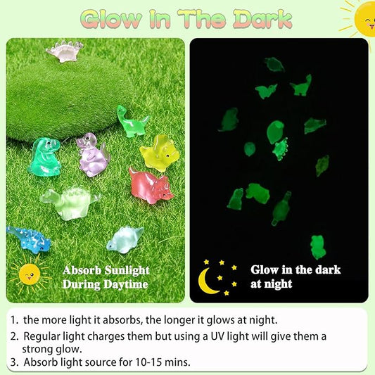 100PCS Luminous Mini Resin Dinosaur Glow in The Dark, 28 Styles Tiny Animals for Hide Garden Micro Landscape Dollhouse Decor Craft