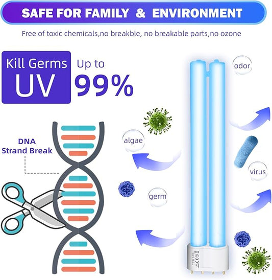 2 Pack 18 Watts UV Light Bulb Replacement UV Light for Pond Clarifier for Outdoor Ponds 4-Pin Base
