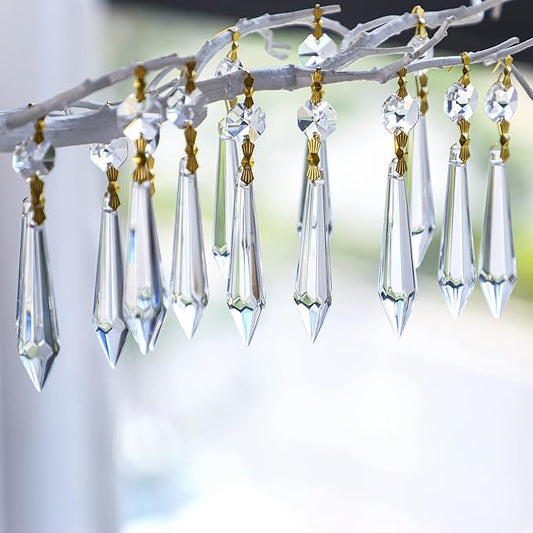 HDCRYSTALGIFTS 50pcs 38mm Crystal Icicle Pendant Chandelier Prisms Drops Lamp Candle Holders Curtain DIY Parts(Multi-Color)