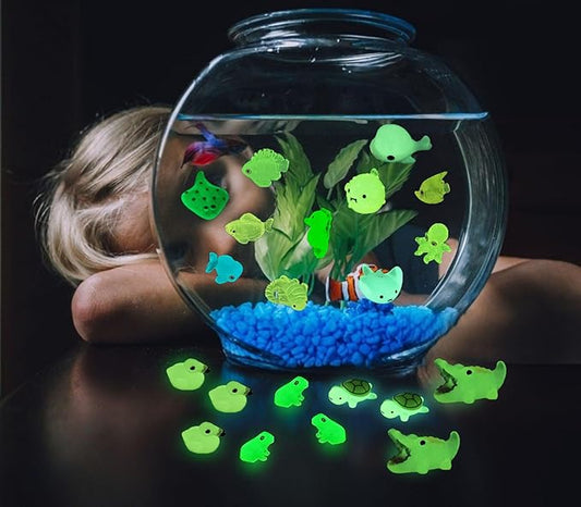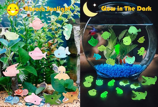 Luminous Mini Resin Ocean Animals 50Pcs Tiny Animals Tiny Turtle Octopus Seahorse Crocodile Dolphin Shark Frog Glow in The Dark for Garden Miniatures Accessories Landscape Aquarium Potted Decoration