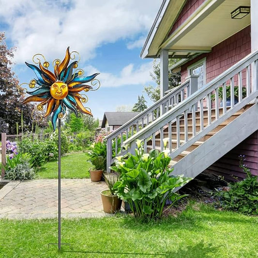 VEWOGARDEN Garden Solar Wind Spinner, Sun Outdoor Metal Wind Sculpture Yard Art Decor for Patio, Lawn & Garden