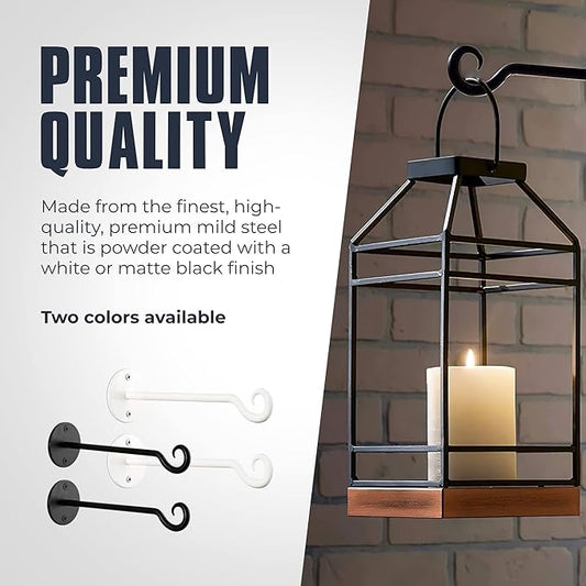 5 Inch Outdoor Decorative Iron Small Plant Lantern Hooks for Wall Hanging Solar Lanterns, Rust Resistant Heavy Duty, Black