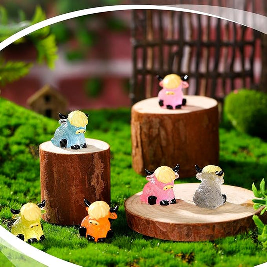 50 Pcs Luminous Mini Highland Cow Figurines Resin Miniature Highlandcow Statues Tiny Cows Miniatures Glow in The Dark for Dollhouse Micro Landscape DIY Home Outdoor Party Decor