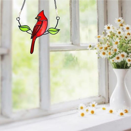 Cardinal Suncatcher, Small Stained Glass Birds Window Hanging Decoration