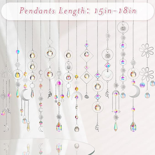 Ysleen 16 Pcs Crystals Suncatcher Colorful Hanging Sun Catcher for Window with Chain Pendant Ornament Prism Rainbow for Garden Wedding Valentine's Day Party Indoor Outdoor Decoration Gift(Silver)