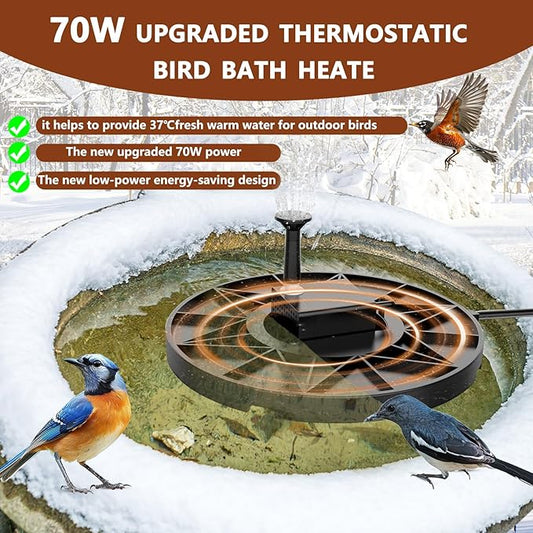 Bird Bath Heater Pond Heater 70W Shallow Water Pond deicer Energy-Saving, thermostatically Controlled Winter Outdoor with a Protective Socket Cover (with Water Pump)