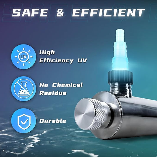 12W Inline UV Light Clarifier for Koi Pond Aquarium Algae Control Cold Plunge UV Light Stainless Steel Ultraviolet Green Killing Machine Algae Remover