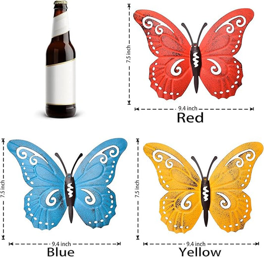 EASICUTI Metal Butterfly Wall Decor Butterfly Wall Art Hanging Sculpture For Indoor Outdoor Home Bathroom Living Room Bedroom Or Porch Patio Fence Yellow Red Blue 3 Pack 9.4" L x 7.5" H