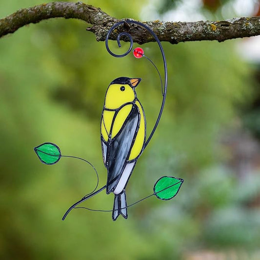 Lolitarcrafts Goldfinch Stained Glass Window Hangings Bird Suncathers for Window