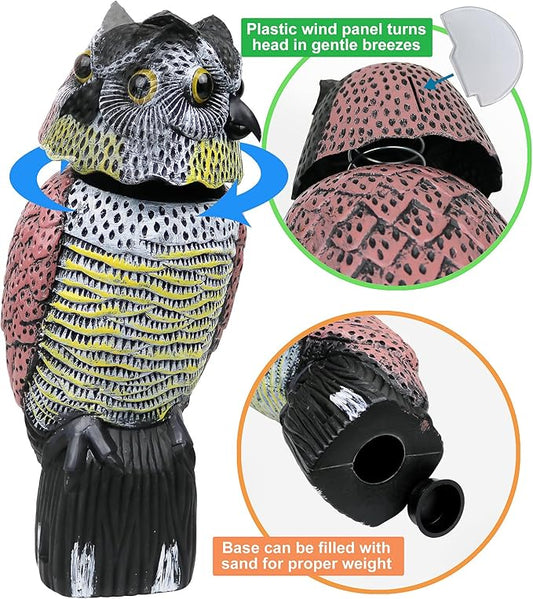 Galashield Owl Decoy to Scare Birds Away Scarecrow Fake Owl with Rotating Head 16" Tall (2 Pack)