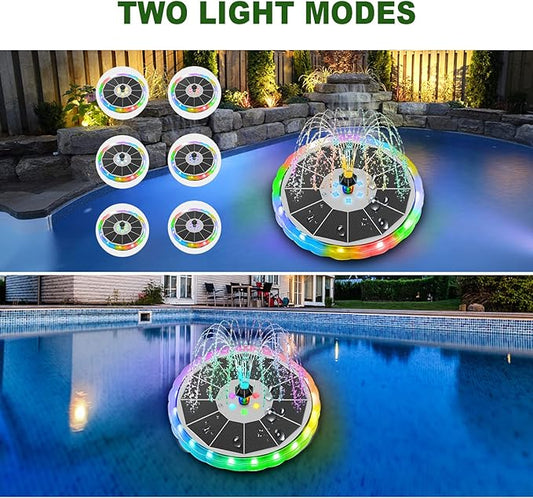 Solar Water Fountain with LED Lights Matte Panel, Built-in 4000 mAH Battery Large Bird Bath Fountains Solar Power with 4 Fixed Rods, Solar Fountain Pump for Pond, Outdoor,Garden,Pool-Multicolor