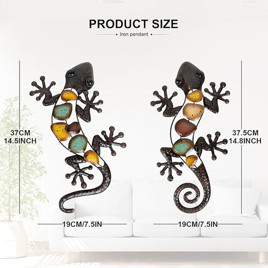 LIFFY Gecko Metal Wall Art Decor 2 Pack 15 Inch - Indoor & Outdoor Lizard Wall Art Hanging Sculpture for Home and Garden