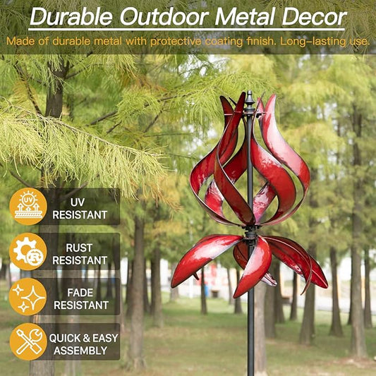 Yard Garden Wind Spinners - Large Tulip Outdoor Metal Wind Spinners with Stake, Yard Art Lawn Garden Decor (24" W x 73" H)