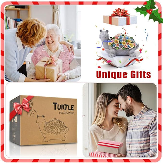 Solar Turtle Garden Decor with Flowers: Outdoor Clearance Statues Lights for Outside Lawn Ornaments Porch Patio Balcony Yard – Birthday Gifts for Mom Grandma Women