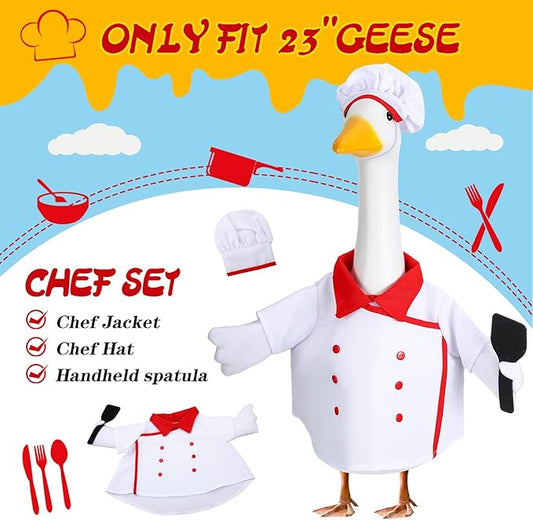 Geyoga Chef Goose Outfit Costume Yard Lawn Porch Clothes for 23'' Plastic Goose Outdoor Patio Art Decoration