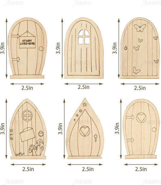AUEAR, 24 Pack Fairy Door Miniature Wooden Garden Doors Windows Unfinished Window Accessories Mini House DIY Craft for Wall Home Party Decoration (6 Styles)
