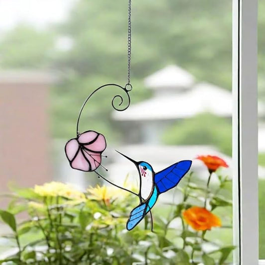 Hummingbird Suncatcher Stained Glass - Hummingbird Gifts for Women, Birds Suncatchers for Windows - Birds Window Hangings with Chain and Hook, 6 inch Stained Glass Suncatcher for Mom