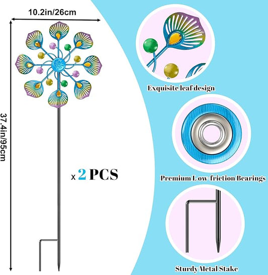 Peacock Wind Spinner Outdoor, Standing Wind Sculpture Yard Art Decorations, Metal Windmill for Patio Lawn & Garden Decor (2pcs-Blue Green)