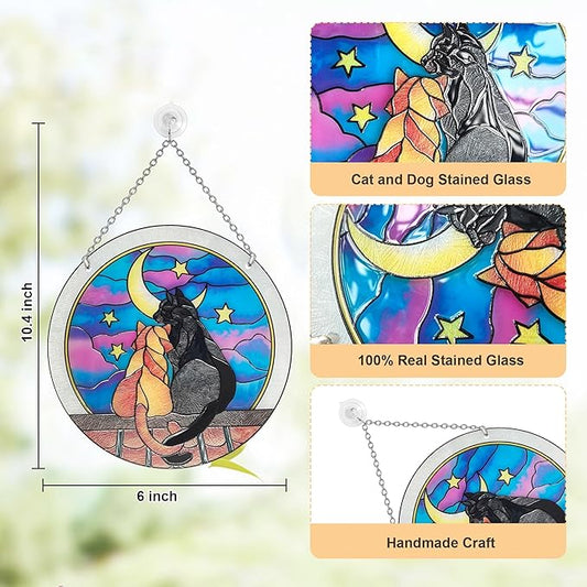 Cat Sun Catcher Stained Glass, 6 * 6inches Suncatcher for Window, Cat and Dog Patterns Sun Catcher Glass,Cat Mom Gifts