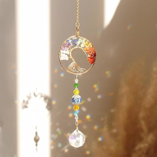 3pcs Tree of Life Chakra Crystal Suncatcher Windows Hanging Gloden Sun Catchers Decor with Prisms for Car, Feng Shui House Warming Gift for Home