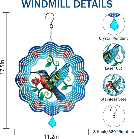 Hummingbird Metal Wind Spinners - 12 Inch Hanging Metal Wind Spinner for Outdoor & Indoor Decor, Hummingbird Kinetic Sculpture for Christmas Ornament Gifts, Yard Art and Garden Decorations