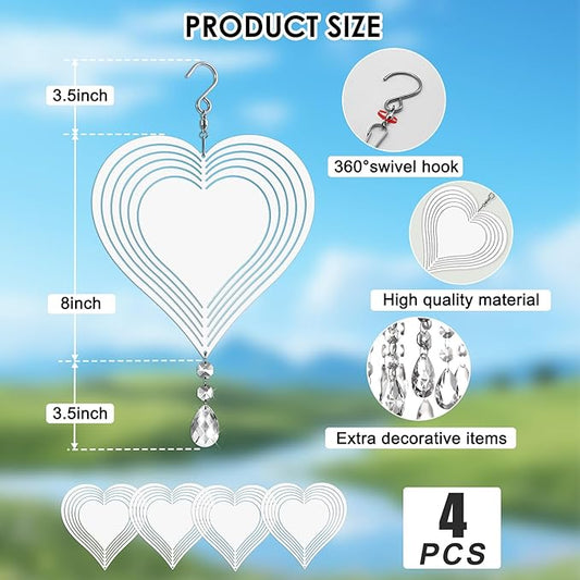 Sublimation Wind Spinner Blanks 8 Inch 4 Pack Wind Spinners Sublimation Blanks with Crystal Pendant Aluminum Metal Wind Spinners for Yard Garden Indoor Outdoor Window Porch Decoration(Heart
