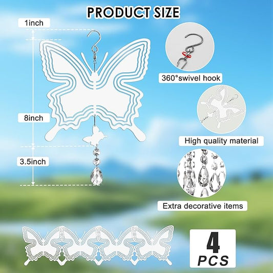 Sublimation Wind Spinner Blanks 8 Inch 4 Pack Wind Spinners Sublimation Blanks with Crystal Pendant Aluminum Metal Wind Spinners for Yard Garden Indoor Outdoor Window Porch Decoration(Butterfly