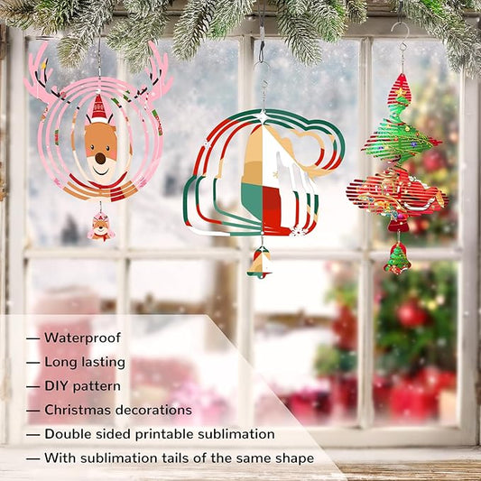 Sublimation Wind Spinner Blanks, 10 Inch 3D Aluminum Metal Hanging Wind Spinner Bulk for Garden Yard Outdoor, Window Porch Decoration for Heat Press Transfer DIY (23. Santa hat-6pcs)