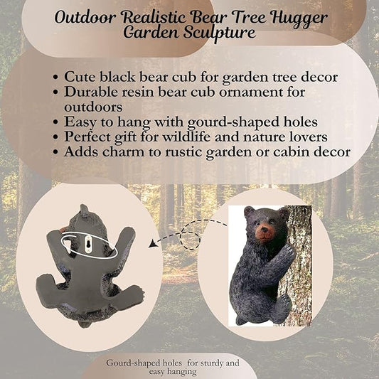 BestGiftEver Black Bear on a Tree Sculpture - Realistic Baby Bear Cub Tree-Mounted Ornament - Wildlife-Inspired Polyresin Garden Decor - Outdoor Bear Yard Decoration for Wildlife Lovers