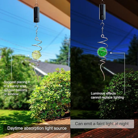 Glow in The Dark Gazing Ball Spiral Tail - Wind Spinner Stabilizer with Glow Glass Ball & Swivel Hook, Hanging Garden Decoration Sun Catcher Rainbow Maker Decor for lndoor Outdoor 13" Height