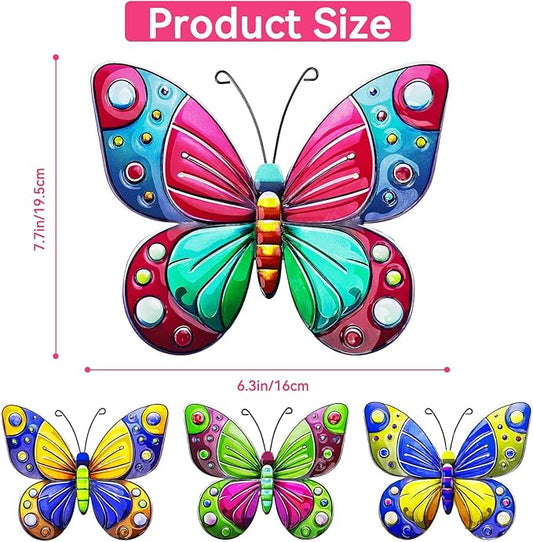 ULENDIS 4 Pack Metal Butterfly Wall Art Decor, 3D Colorful Outdoor Wall Art Fence Decorations for Patio and Yard, Hanging Decor for Garden Living Room Balcony, Gift for Family Friends(C)