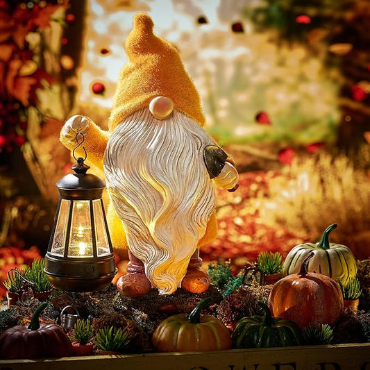 TERESA'S COLLECTIONS Christmas Outdoor Statue for Home, Resin Gnome Decorations with Solar Outdoor Lights for Garden Decor,Yellow Garden Sculptures & Statues for Front Patio Lawn, Gifts for Mom,12"