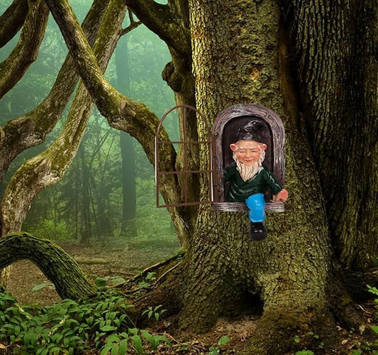Whimsical Fairy Garden Gnome Statue, Tree Faces Decor Outdoor -5.9 Inch, Funny Garden Tree Decoration,Ideal Patio Yard Lawn Porch Decoration