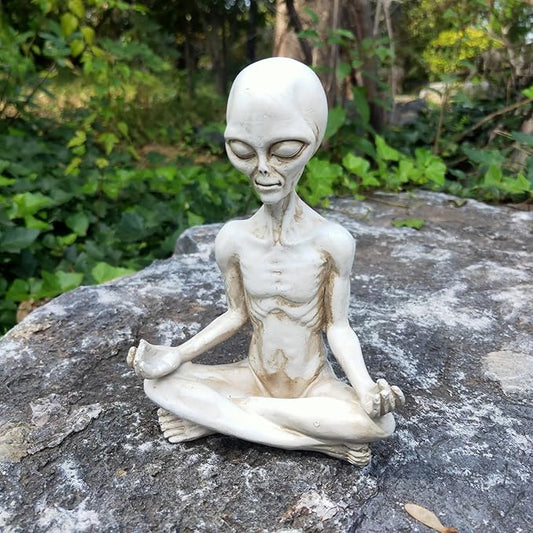 White Alien Statue, Resin Yoga Pose Alien Figure, 6.3" H Creative Yoga Alien Statue of The Thinker for Home Offcie Garden Decor Supplies