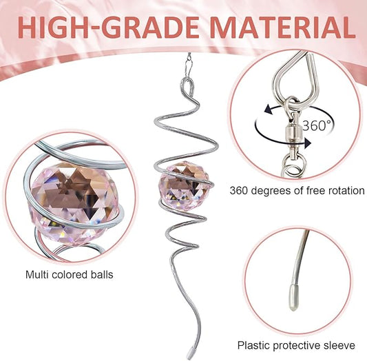 Gazing Ball Spiral Tail, Spiral Wind Spinners with Pink Crystal Orb with Swivel Hook, Suncatcher Rainbow Maker Hanging Garden Ornament Outdoor Decoration Indoor Outdoor Decor 13 inch Height